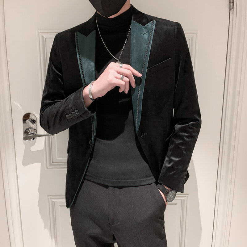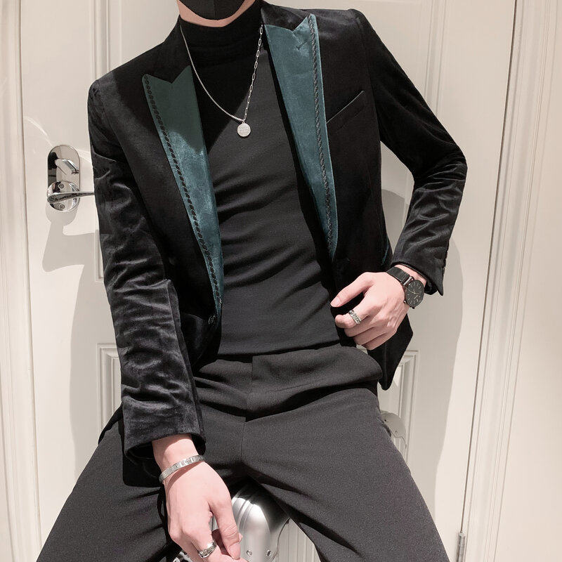 2021 Autumn Winter Men's Society Small Group Silk Suede Casual Suit Uni-West Trend Han's version Western suit jacket male
