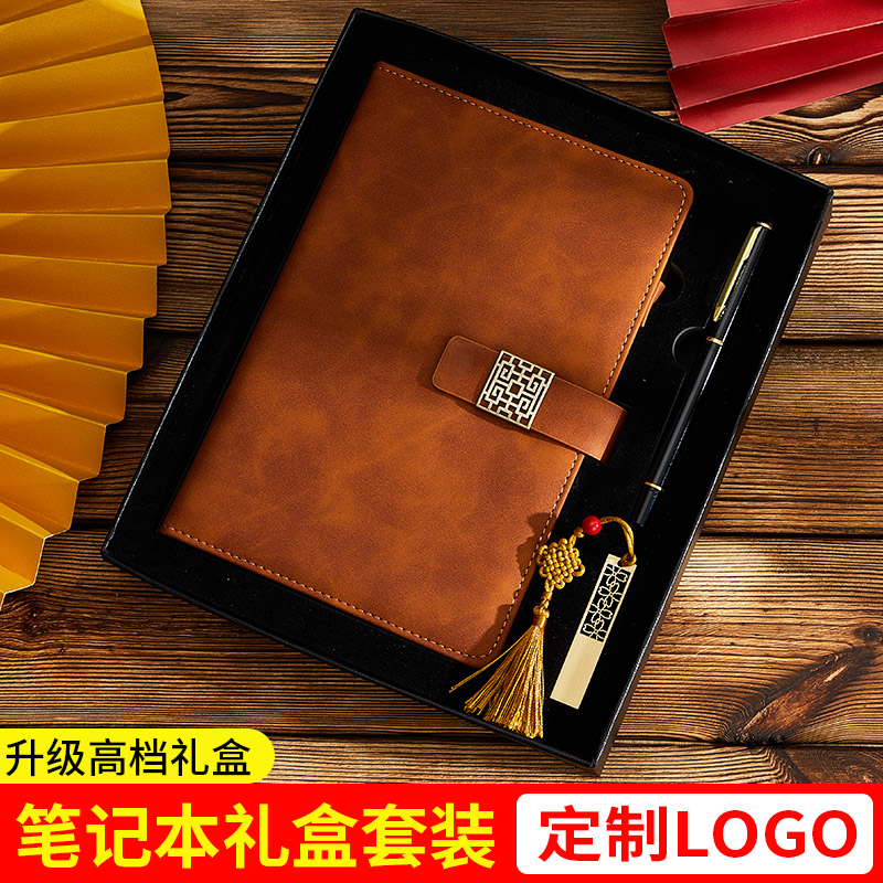 Notebook Custom LOGO Notepad Business Minutes Work Leather Face This Thickened College Student Day Note Book A5 Brief Retro Notebook Business Set Make Inner Page Print Gift Box Set