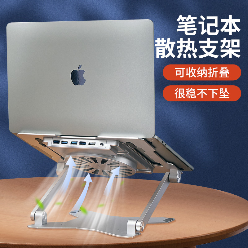 Notebook radiator computer bracket aluminum alloy silent fan folding lifting and dropping 14 inch support frame for HP Dell Huawei Lenovo Base Type c port expansion with USB dock