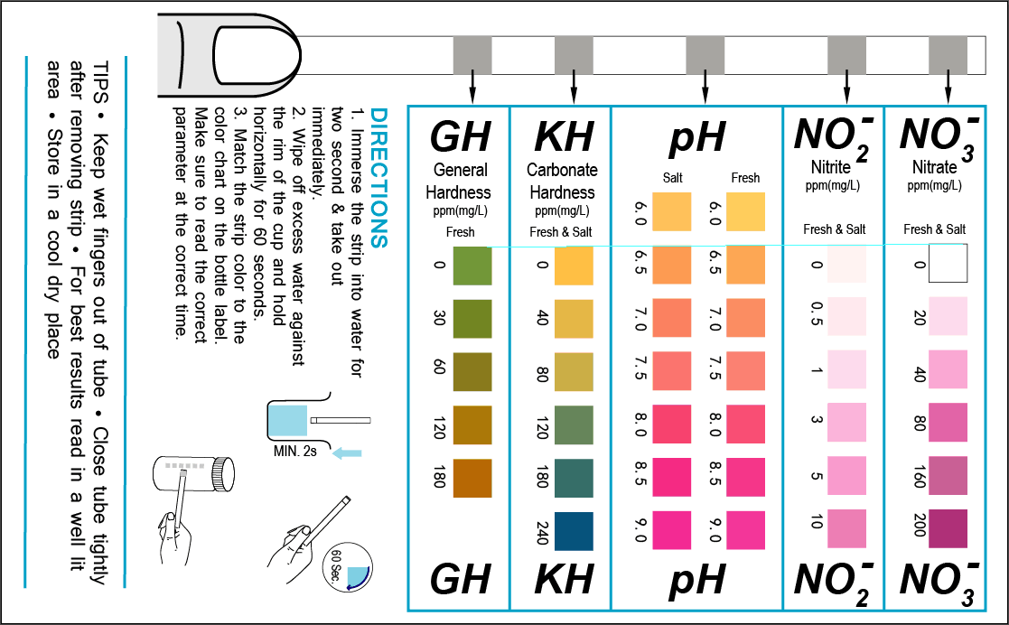Water quality testing 50 fish aquarium seawater freshwater testing hardness pH nitrite test strips