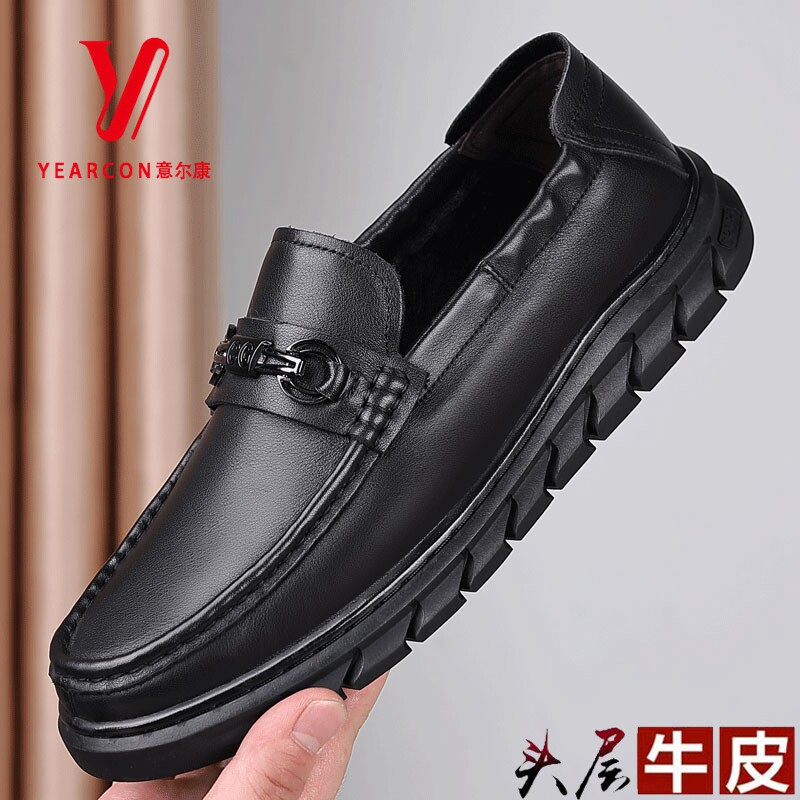 Spring New Yercon Men Casual Genuine Leather Men's Shoes One Foot Pedal Soft Bottom Legue-bean Shoes Bull Leather Han Version Men's Board Shoes