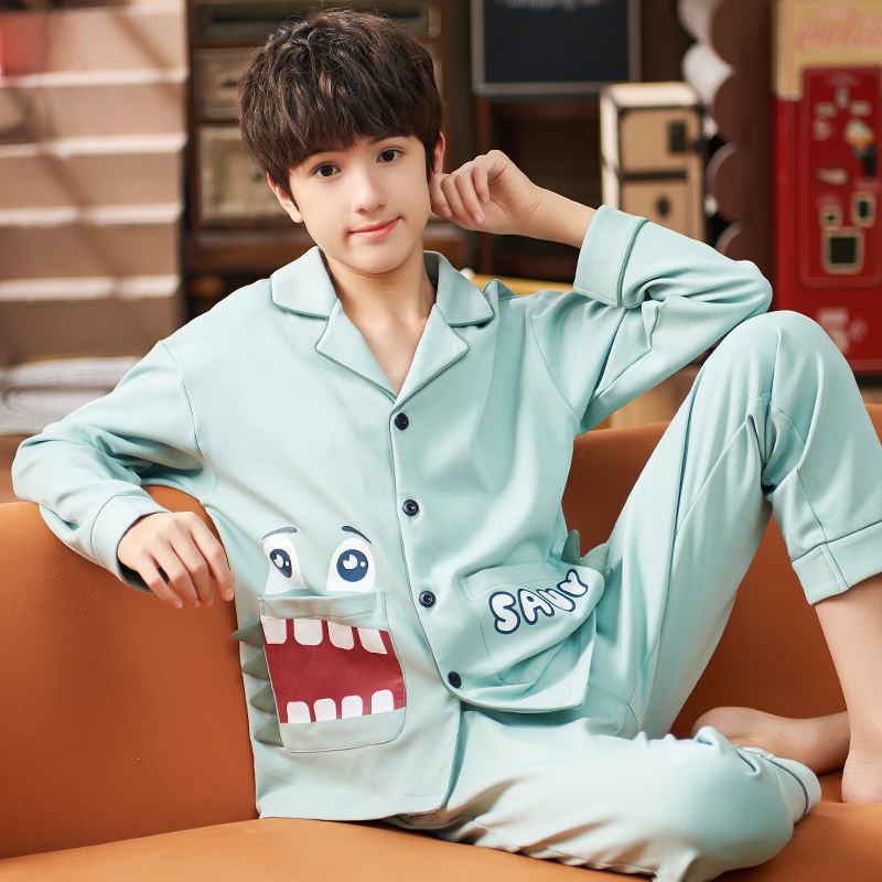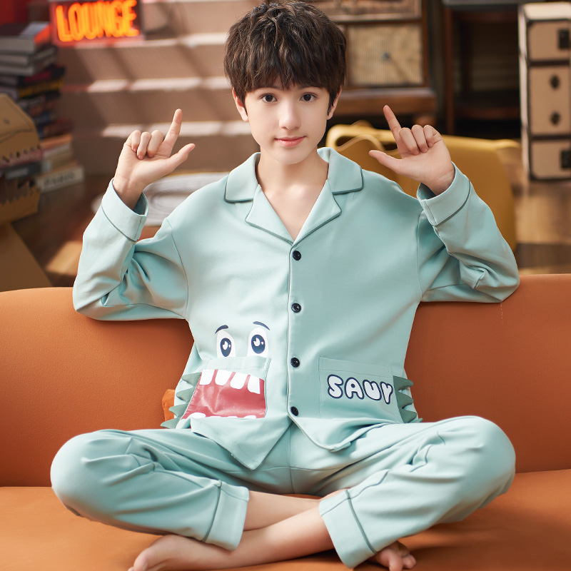 Boys' pajamas new spring and autumn cotton thin long-sleeved suit children's middle-aged boy baby summer home clothes