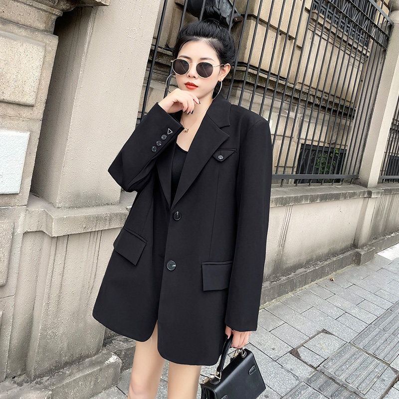 Small Suit Jacket Woman Black Advanced Sensation Small Crowd Early Fall New Korean Version Loose Temperament Casual West Suit Jacket
