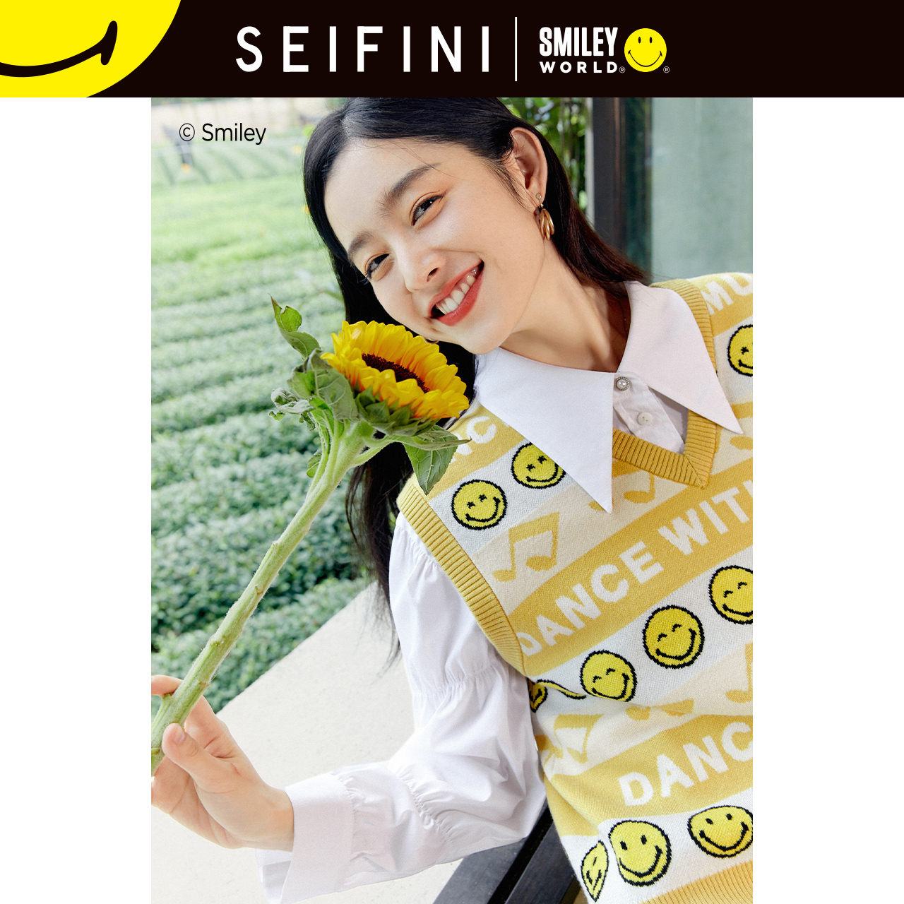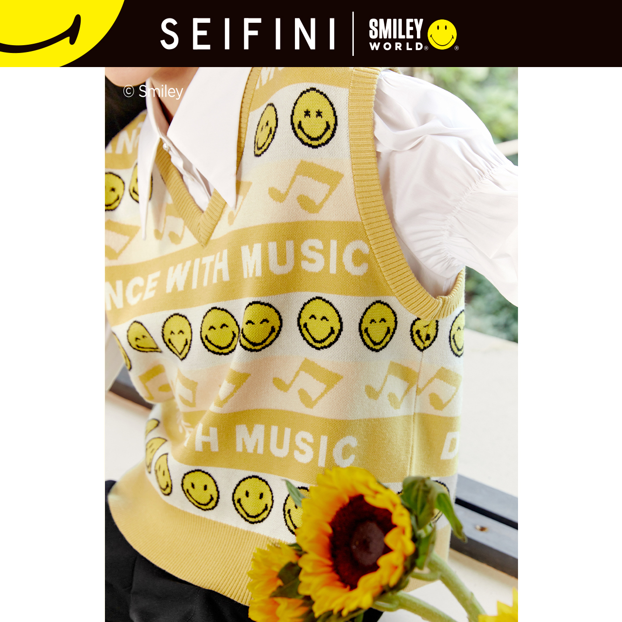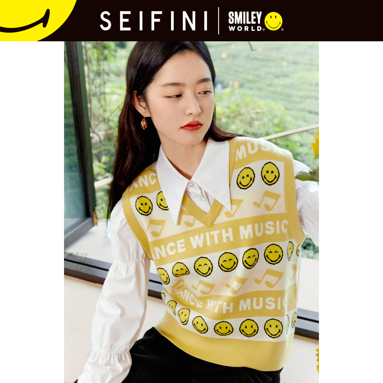 SmileyWorld shopping mall with the same style of poetry Fanli 2021 new autumn and winter v-neck knitted vest female 3CA635182M