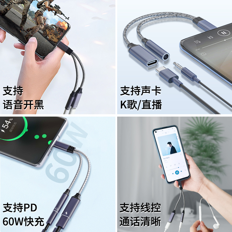 typec headphone adapter applies Honor phone Magic3 2 fast charge v20 20 charge two-in-one v30 30pro converter eat chicken tpec interface Huawei