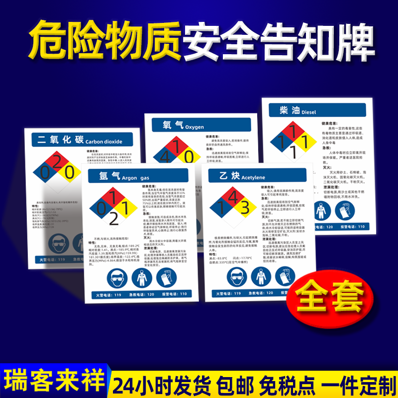 Dangerous Substances Safety Informed Card Occupation Hazard Dangerous Goods Inform Signs Warning Signs Warning Signs Acetylene Oxygen Argon Diesel Carbon Dioxide Oil Paint Fire Safety Identification Cards