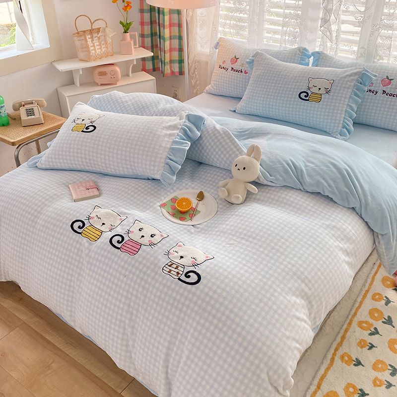 1 2 beds Three sets of sleeves 150 * 200 Bedsheets 1 5 beds 4 pieces of covered quilt cover 200 * 230 Bedsheets 1 8 beds Four pieces of covered quilt cover 200 * 230 Bedsheets 2 0
