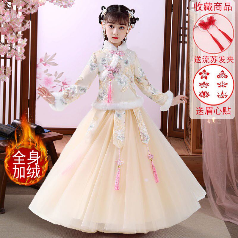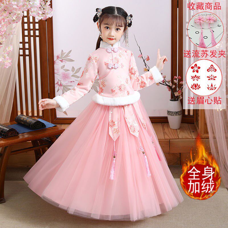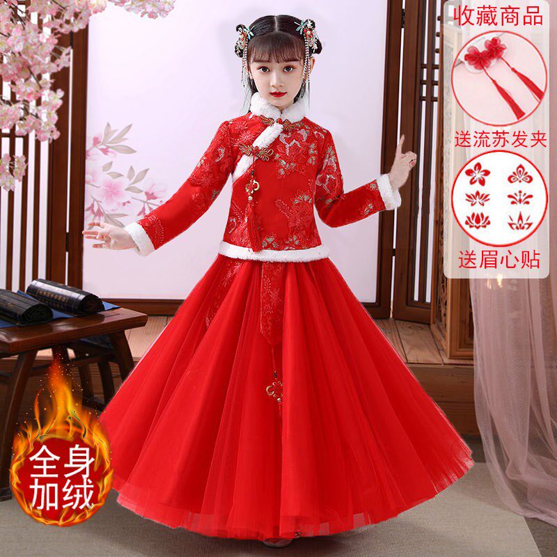 Children's Handmaid's Autumn Dress Plus Suede China Wind New Tang Dress Girl Skirt Autumn Winter Chinese CUHK Scout Fairy Costume