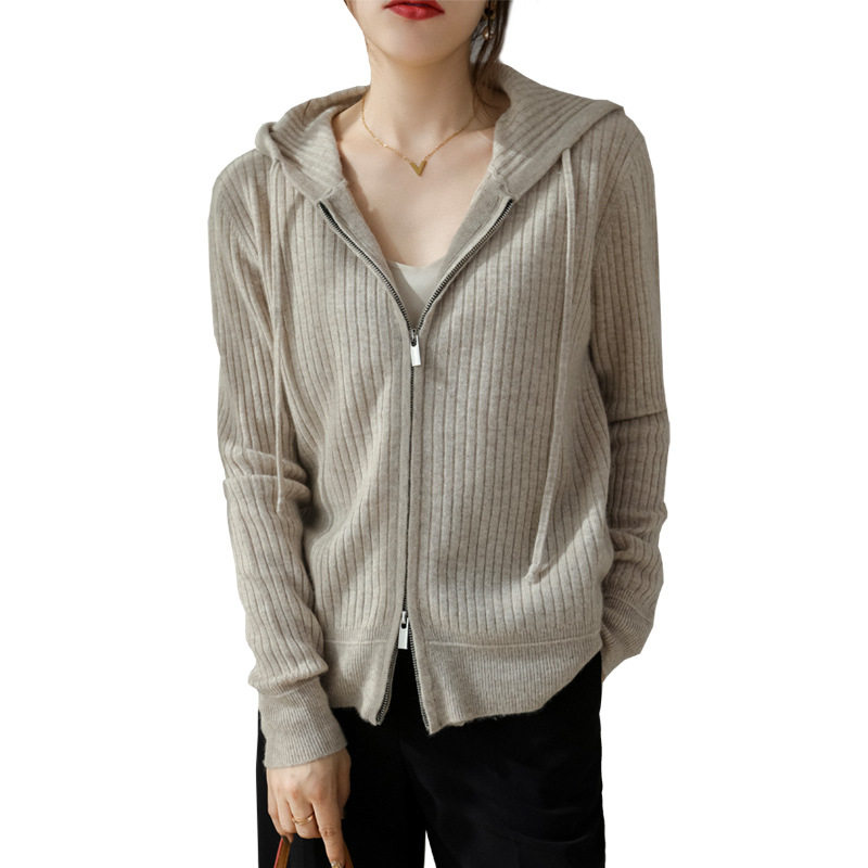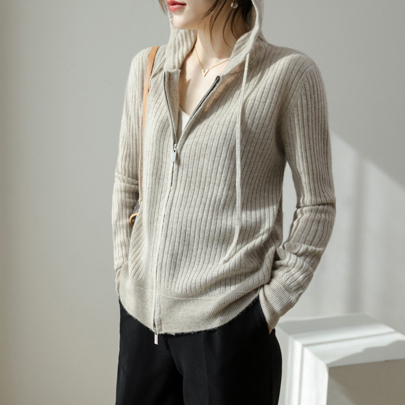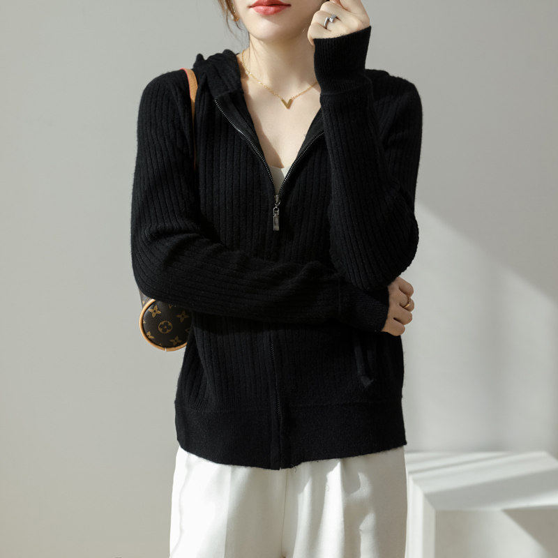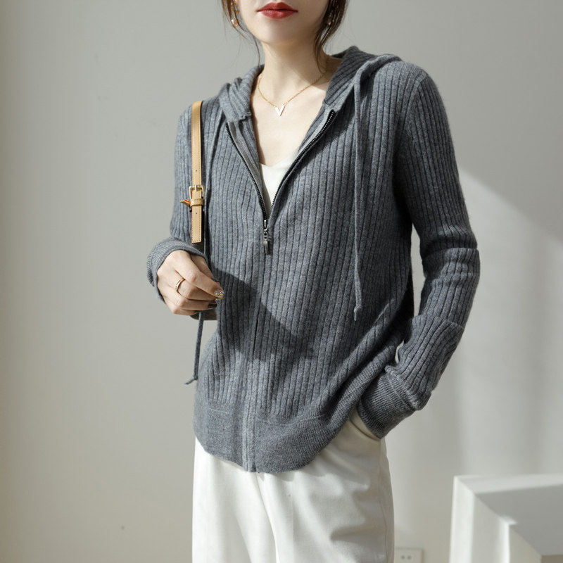High-end Zhihe 2022 autumn and winter new icicle pure wool cardigan zipper hooded sweater jacket thin section
