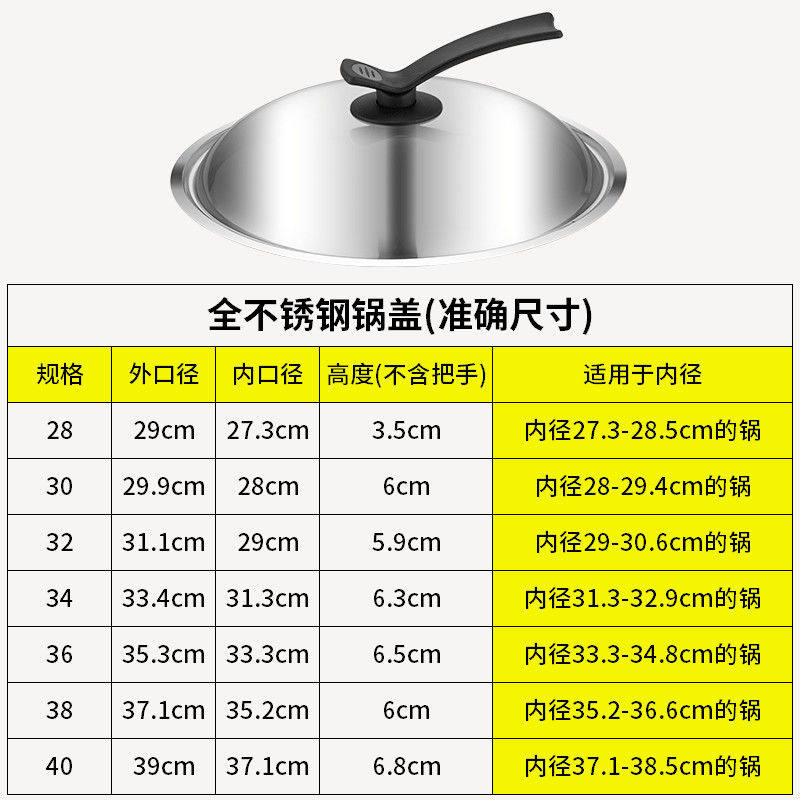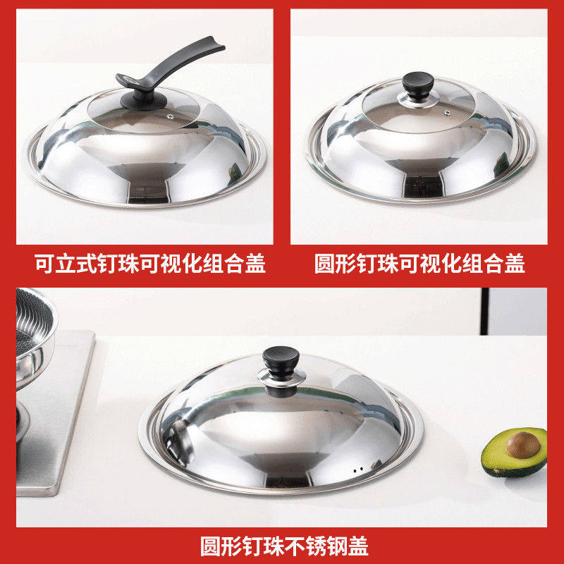 Stainless Steel Pan Lid 304 Food Grade Plus High Lid Steam Pan Iron Pan Frying Pan Lid Stockpan Electric Cooker Lid High Lid