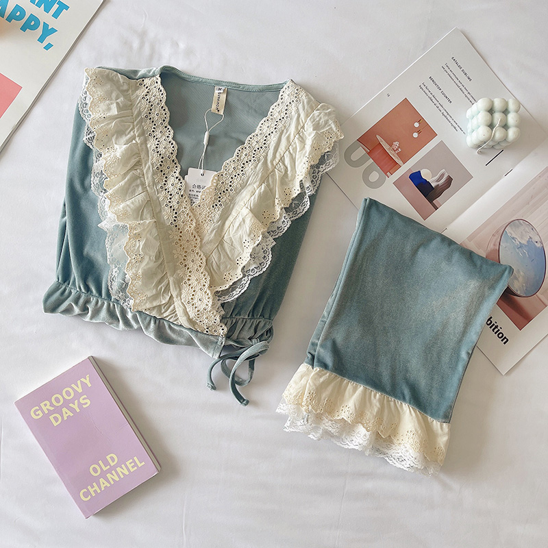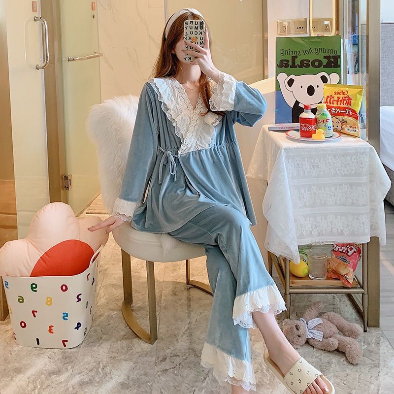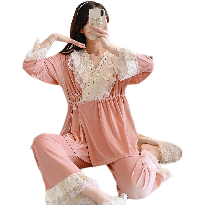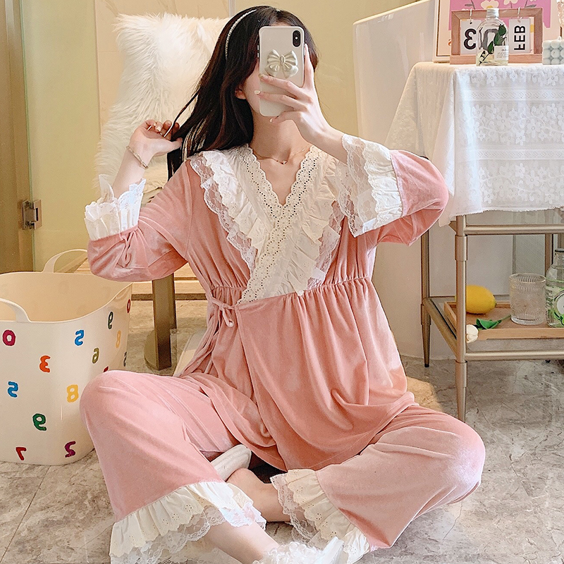 Jiaying velvet confinement clothes princess wind spring and autumn postpartum pajamas for pregnant women March 12 winter to be pregnant nursing home clothes