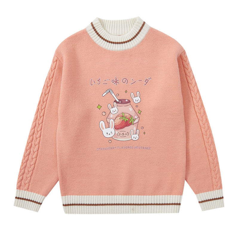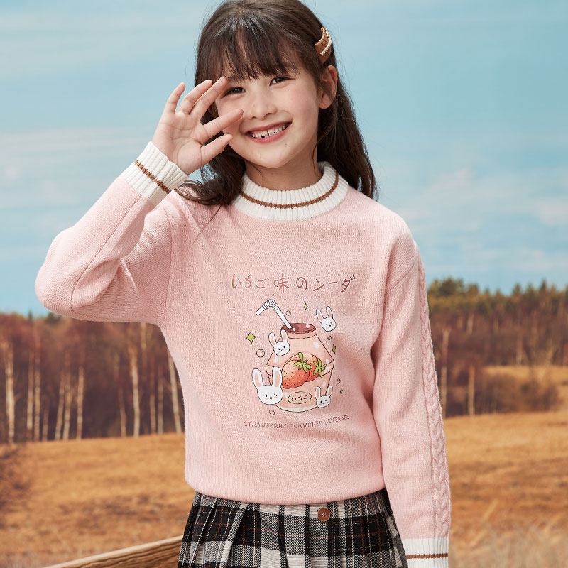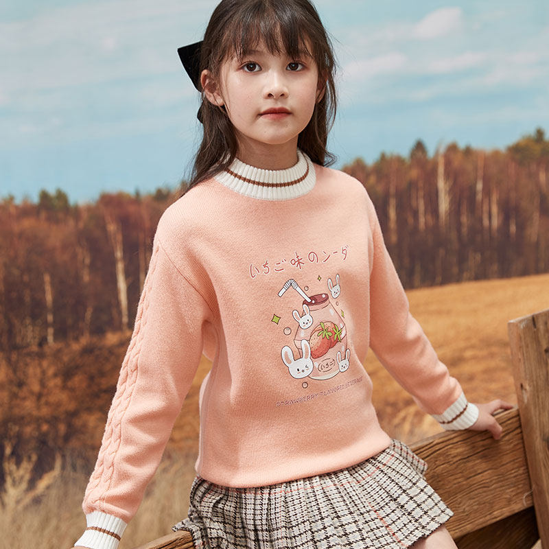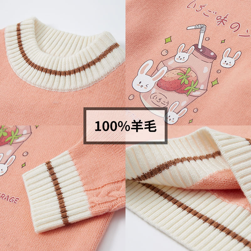 Girls sweater sweater in the big children's knitted sweater sweater in autumn and winter thickness coat 100 % pure wool