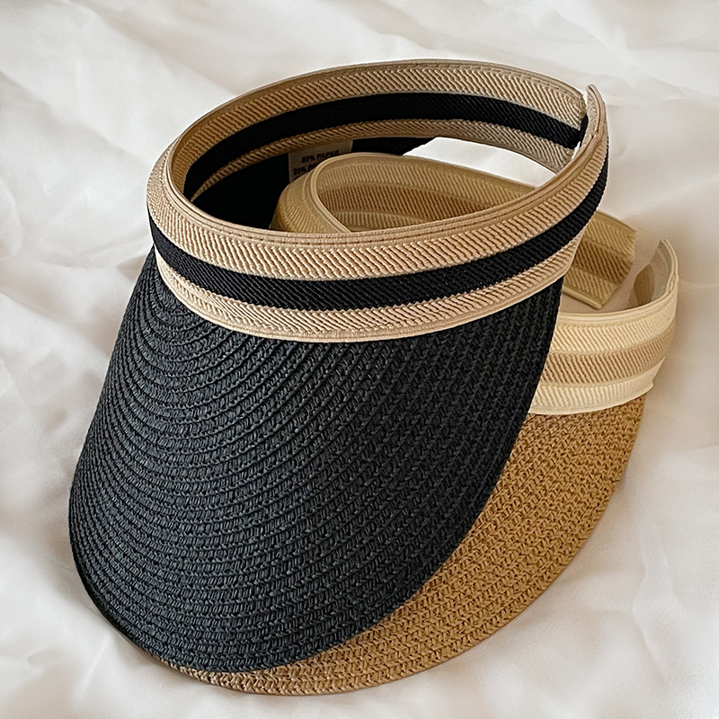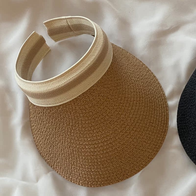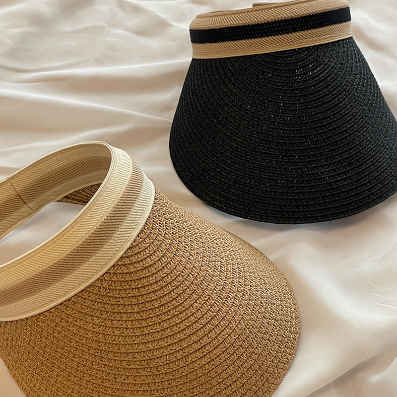 2022 summer sun hat female topless sun protection against UV shading cap air top adjustable straw hat woven beach