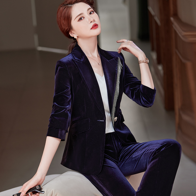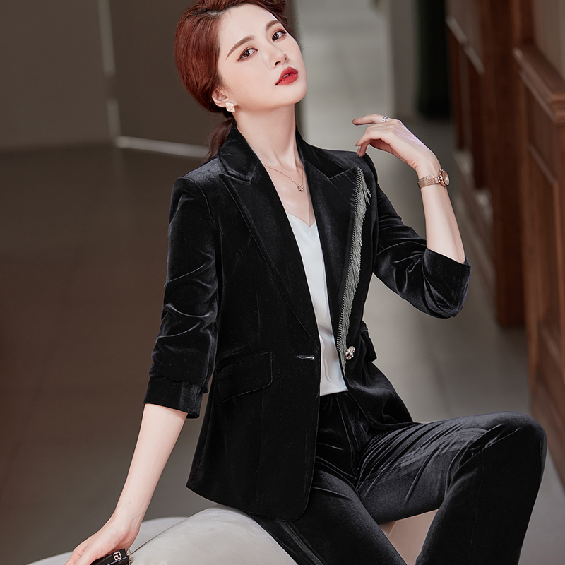 Suit Jacket Woman 2021 Autumn new Korean version Fashion Fashion Temperament President Golden Velvet Professional Casual Little West Suit Suit
