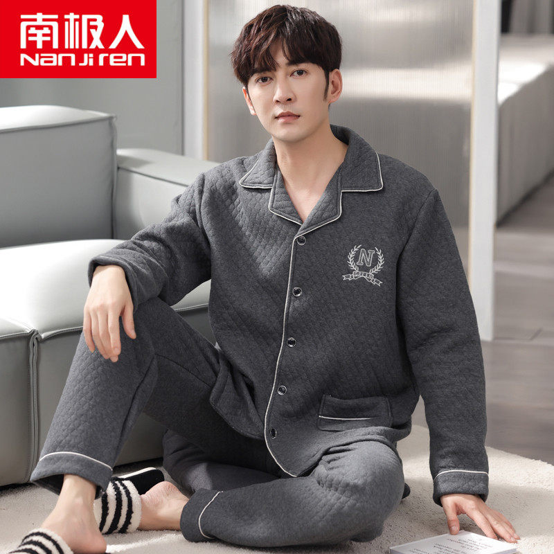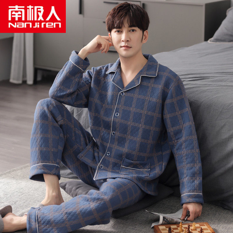 South Pole Autumn Winter Air Cotton Mezzanine Pajamas Men Spring And Autumn Thickened Pure Cotton Long Sleeve Thin and Cotton Home Conserved