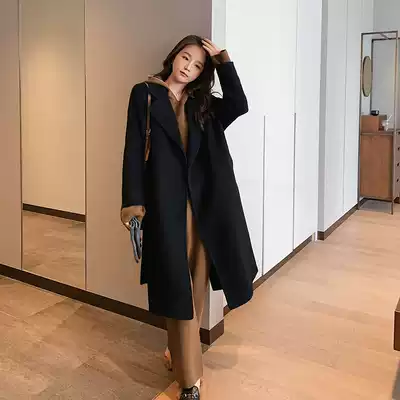 2021 new autumn and winter double-sided cashmere coat women's long version of wool high-end woolen coat black woolen