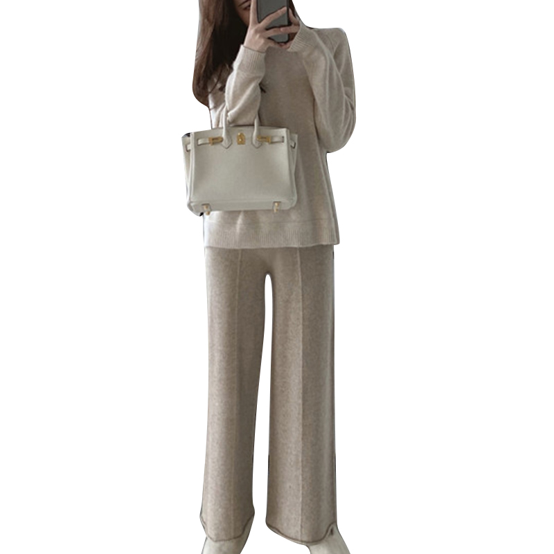 Pregnant women's trousers spring and autumn outer wear trendy mother knitted core-spun yarn wide-leg pants autumn and winter all-match loose straight trousers