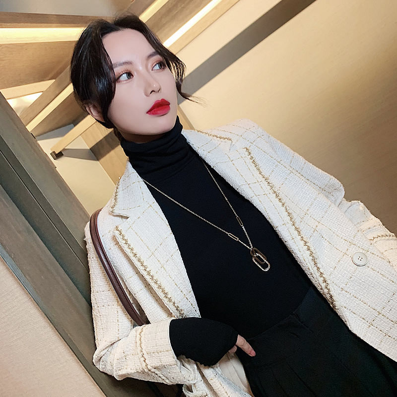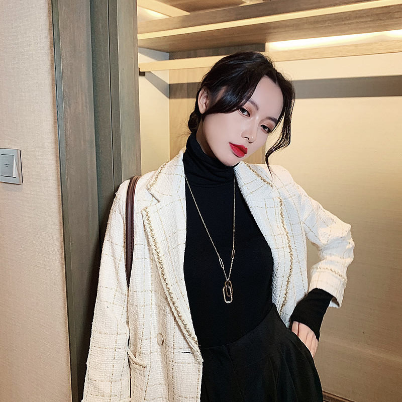 Korean double-ring sweater chain long necklace light luxury niche net red ins hip-hop pendant autumn and winter sweater accessories trend