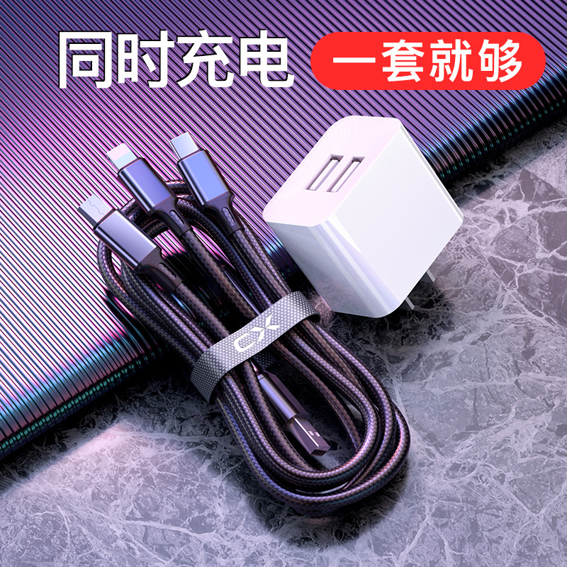 Charger three-in-one mobile phone vivo extended multi-port fast charging set Huawei charging head universal punching universal multi-head plug Apple Android car cable multi-function one drag three applicable