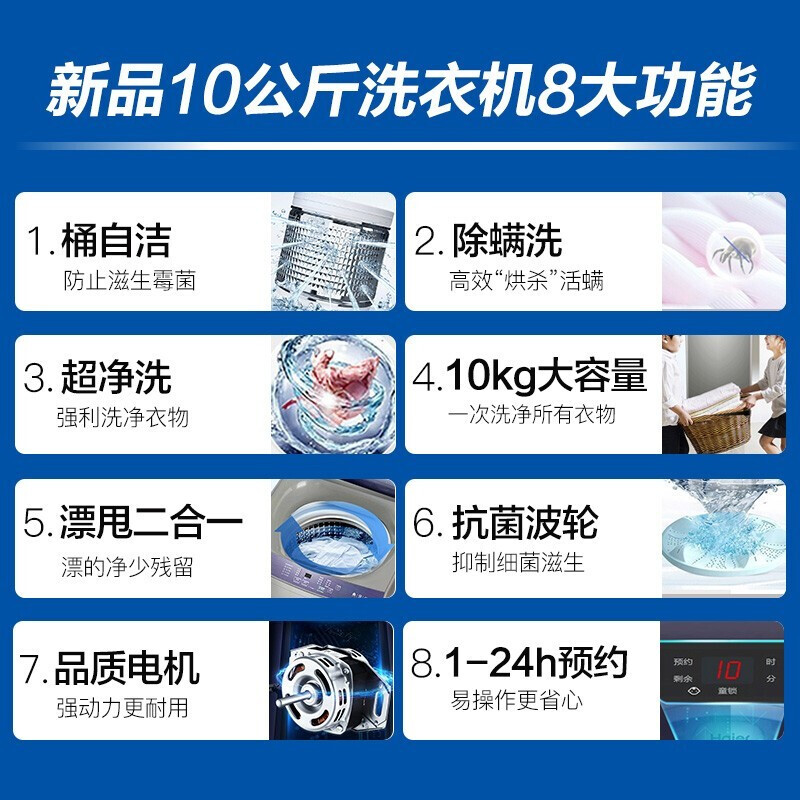 Haier Washing Machine Fully Automatic Home 8 10kg Large Capacity Frequency Conversion Energy Saving Mite-Wave Wheel Mini-Eluting Integrated