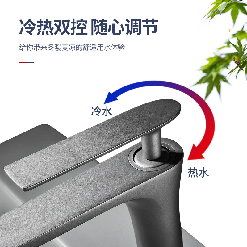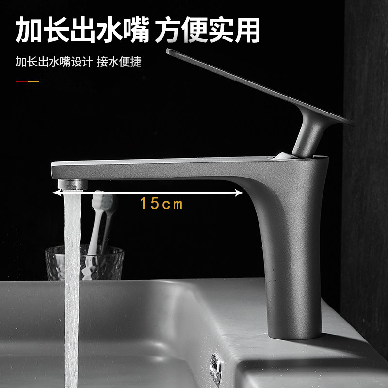 Wash basin faucet all copper gun gray household splash bathroom washbasin bathroom cold and heating faucet