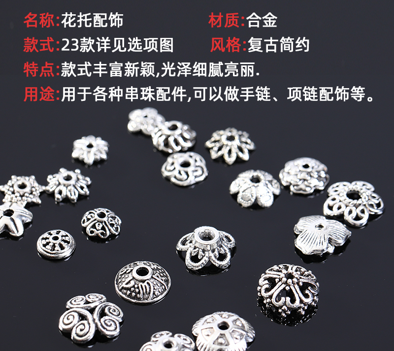 Small flower care septa accessories Tibetan silver flower hat Spacer Strings Beads Handmade String Hollowed-out Beads Diy Handmade Ornament Material