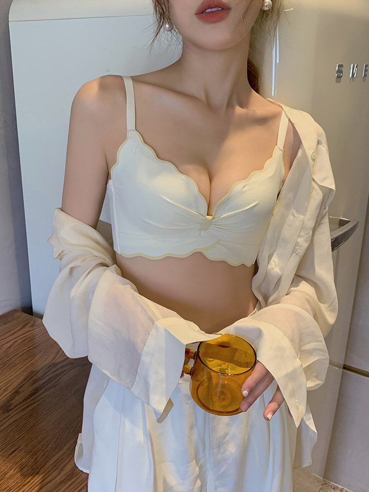 Wei Miyu small chest gathered latex underwear female no steel ring to receive the auxiliary breast anti-sagging non-marking comfortable bra set