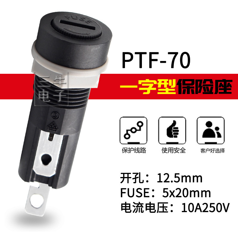 PTF-70 fuse seat FUSE import insurance tube holder box One-type flame retardant high temperature resistant and environmentally friendly 10A250V