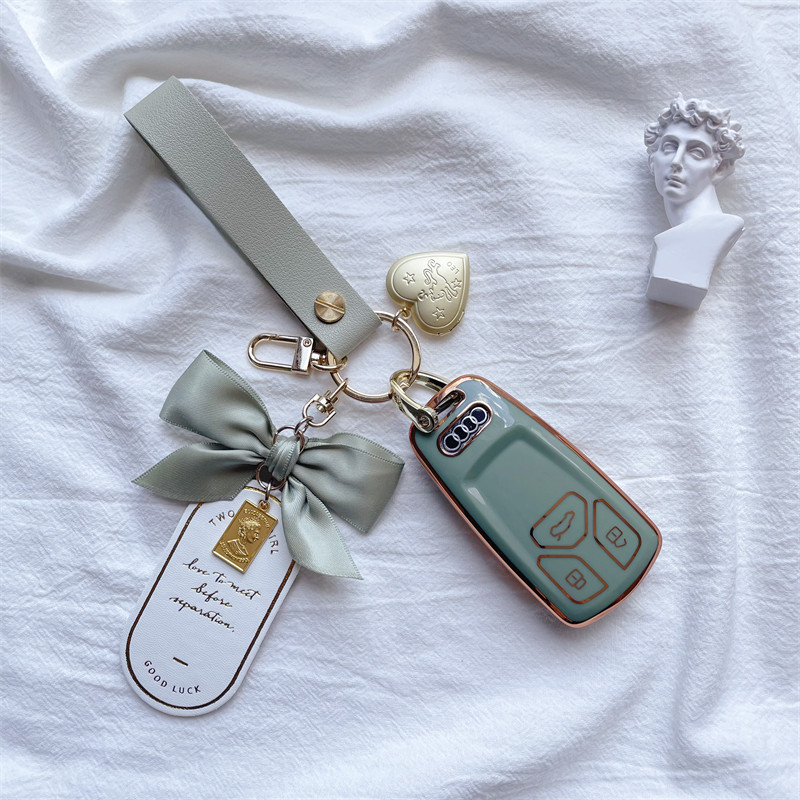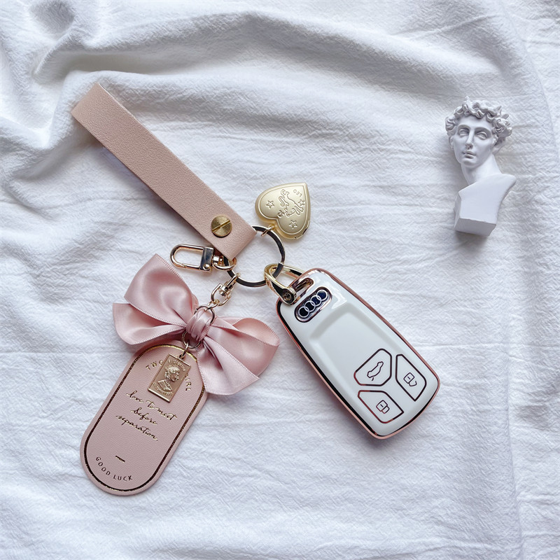 Audi B model with gold edge white Pearl chain Audi model B model with gold edge white Love pearl chain Audi model B model with gold edge white Pink leather bow Audi model B gold edge light green White and green leather bow Audi