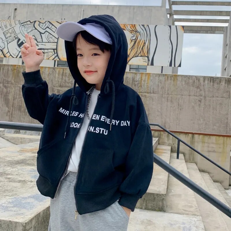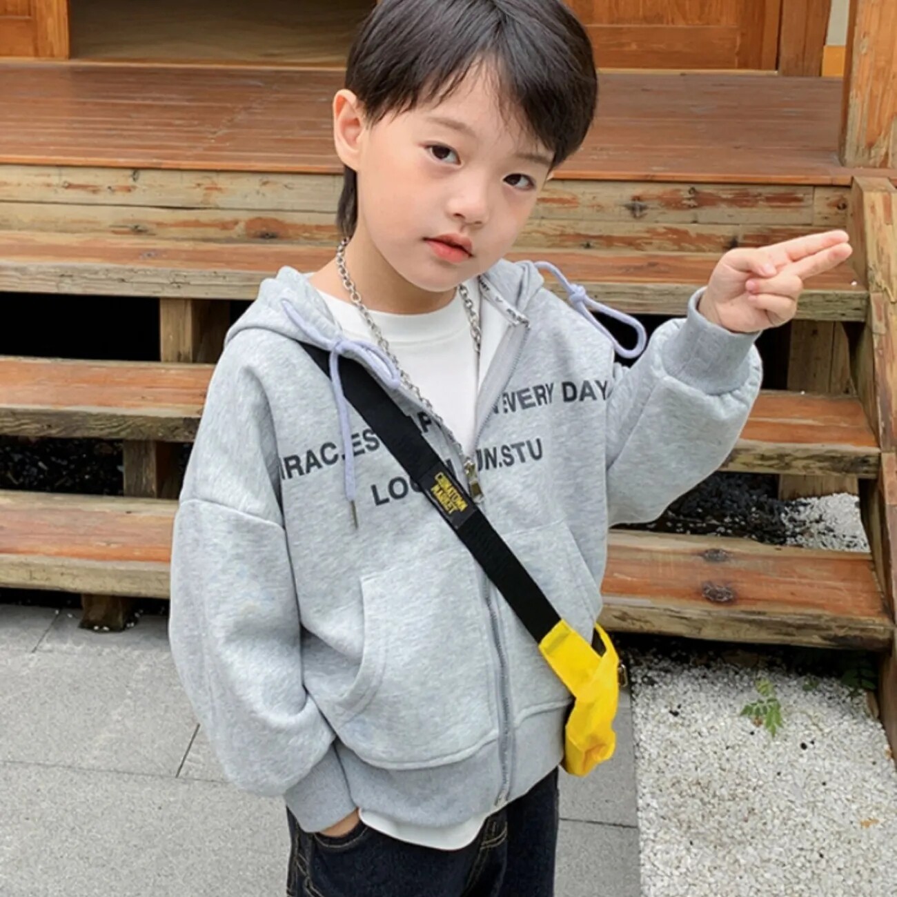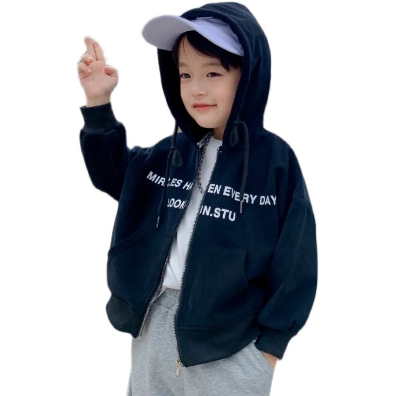Boys Sweater 2021 Autumn Children's Spring Boys Spring and Autumn Hooded Cardigan Long Sleeve Letter Print Autumn Black