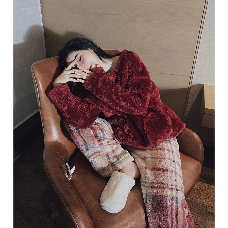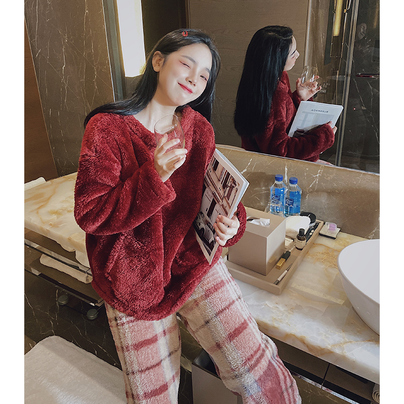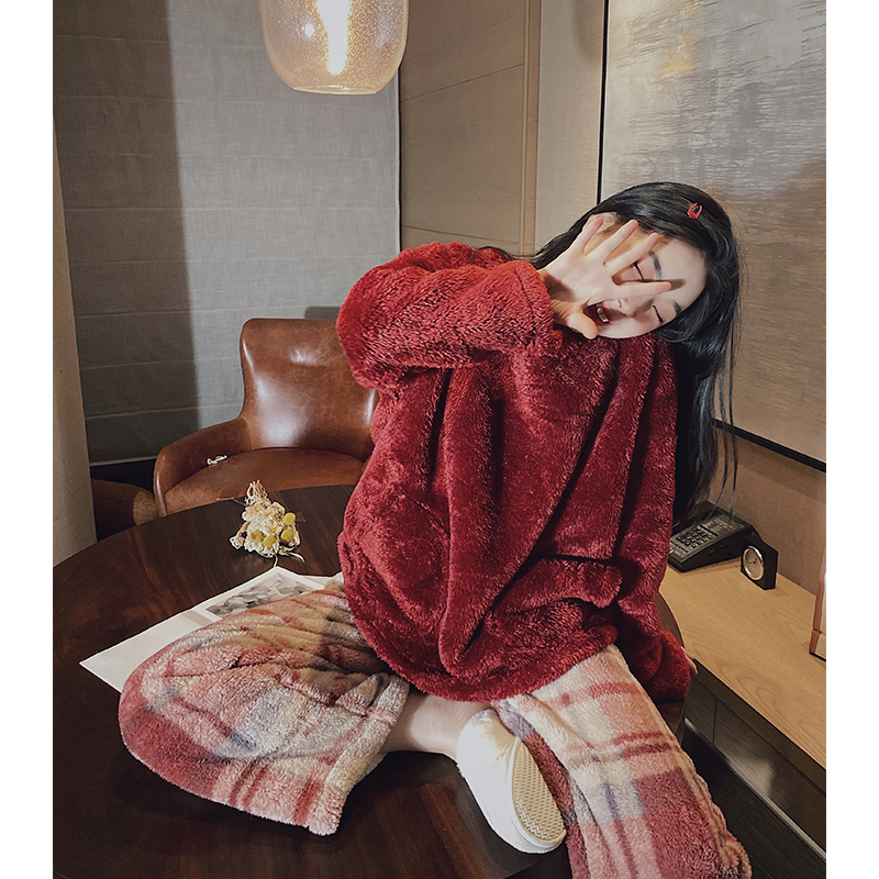 Home Deer Deer Gush Thickened Pyjamas Woman Autumn Winter Long Sleeve Round Collar Two Sets 2021 Of 2021 New Home Suits Outside