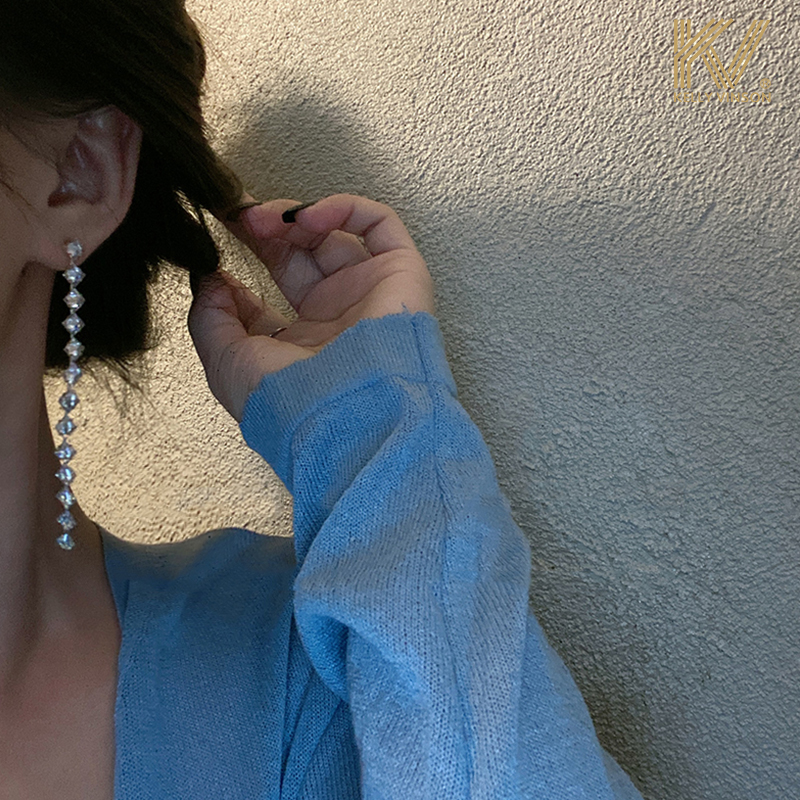Long version of the ear decoration Feminine Design Sensation Small Crowdport Wind Ear Needle New Lukewarm Wind Ear Pendant Temperament Sparkling Stream Suearrings