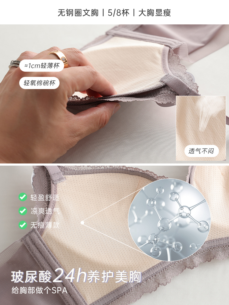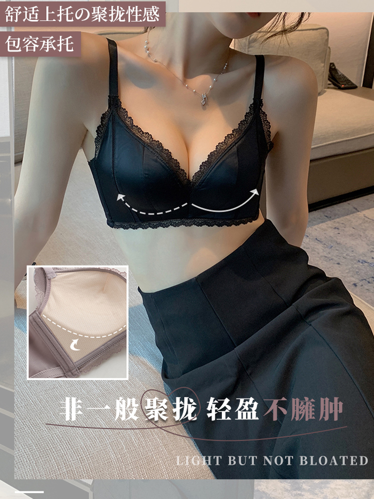 CK ιdk underwear women gather ultra-thin without steel ring big chest show small collars anti-sagging bra set satin summer