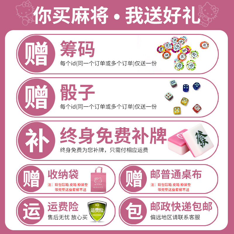 Household hand-rubbed mahjong tiles pink cute Hello cartoon mahjong No. 40, No. 42, No. 44, first-class product