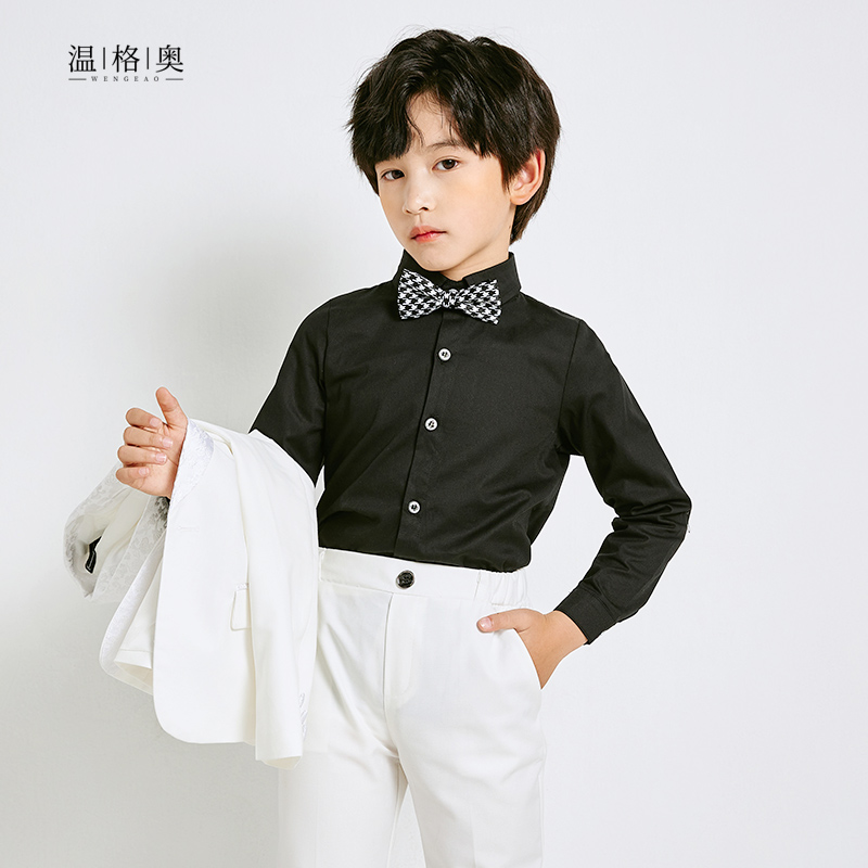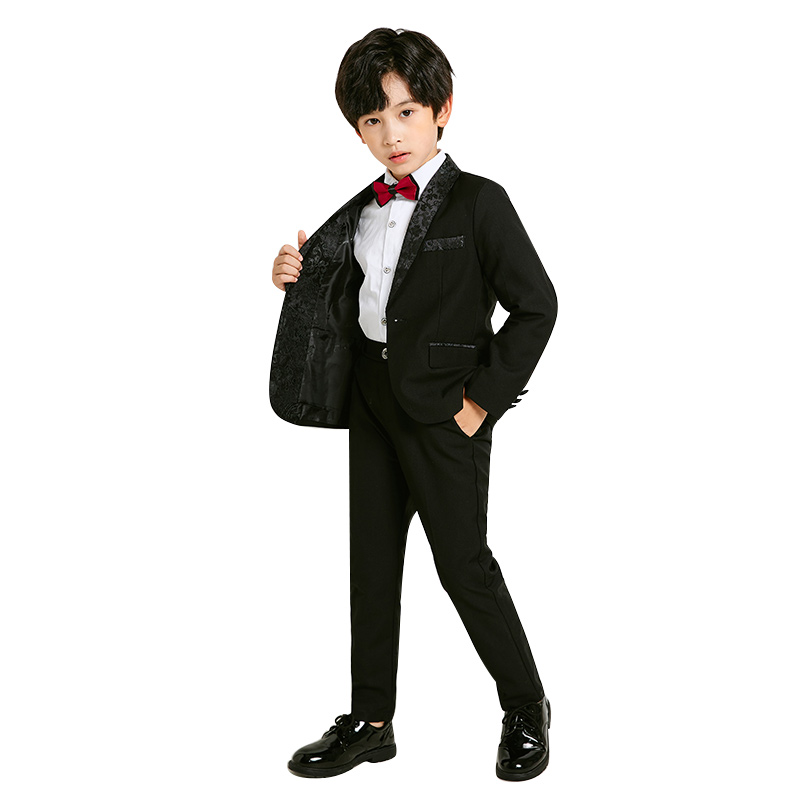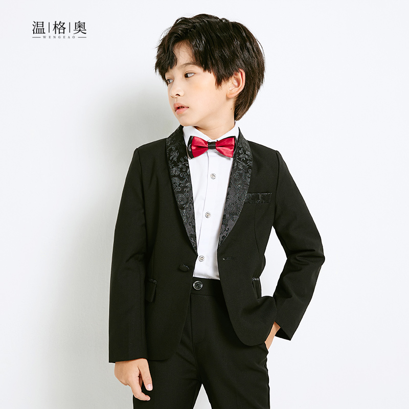 Children's handsome dress set Spring and Autumn Boys Wedding Flower Boy Black and White Suit Piano Host Performing Suit