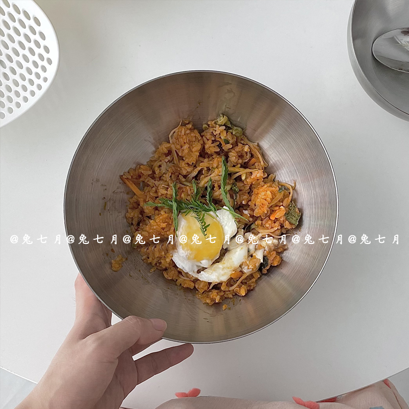 Rabbit July) Jane Joins Han Style Mixed Rice Bowl Metal Stainless Steel Cold Noodle Bowl Home Fruit Salad Bowl Soup Bowl