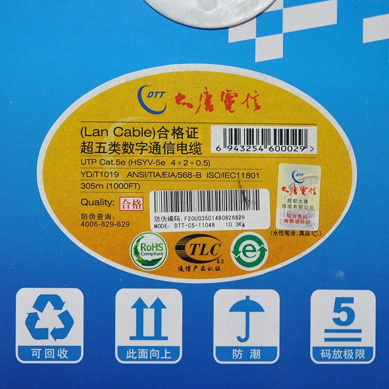 DTT Datang Network Cable Telecom Grade Super Five Category Six Unshielded Network Cable Broadband Network Cable Oxygen Free Copper Core