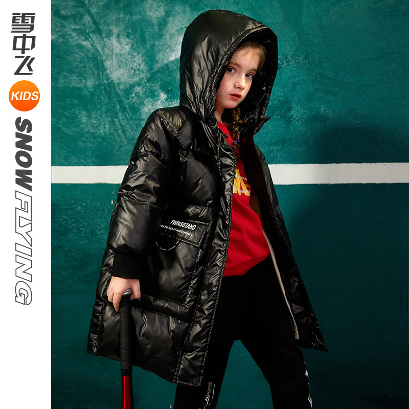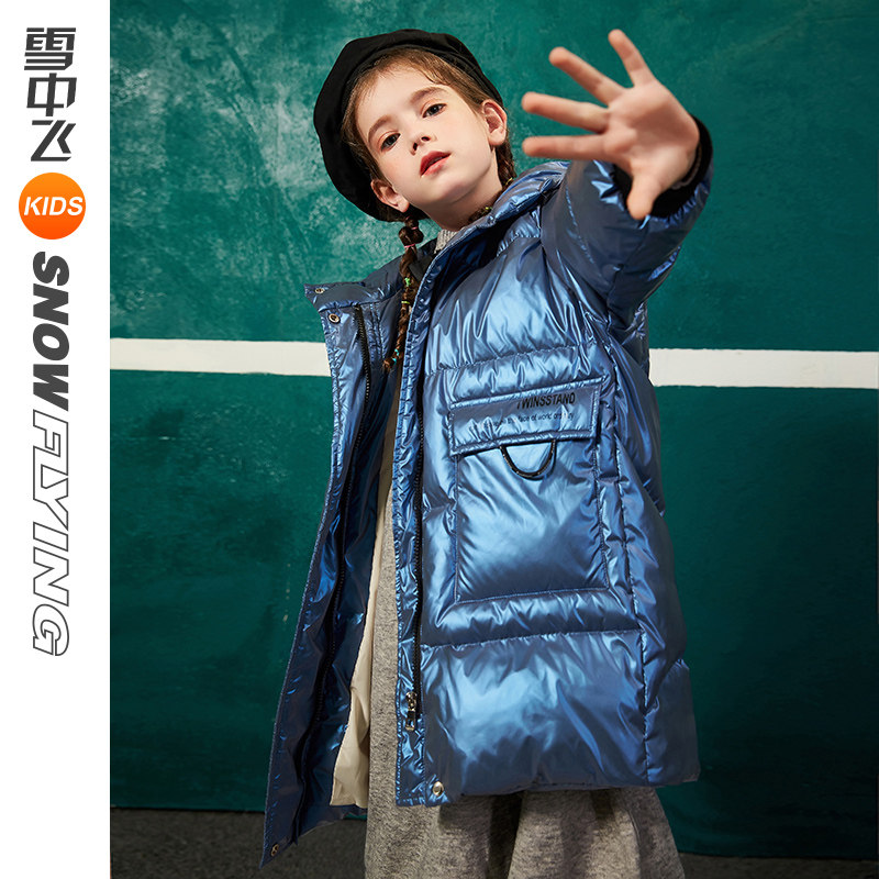 Snowy flying children's clothes children's down clothes in long version thickened girl child white duck suede bright face down coat winter