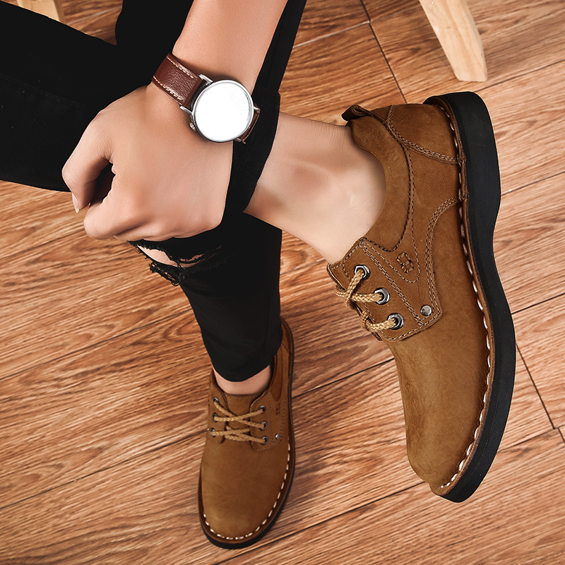 German camel dynamic outdoor casual shoes men's large scalp shoes leather work shoes men's low-top non-slip Martin shoes