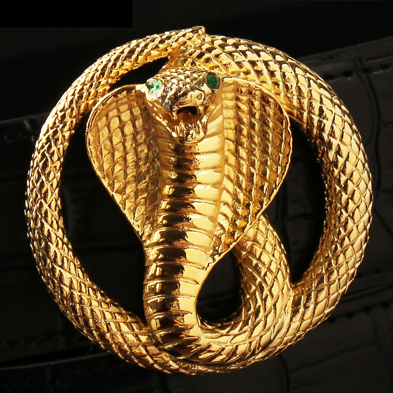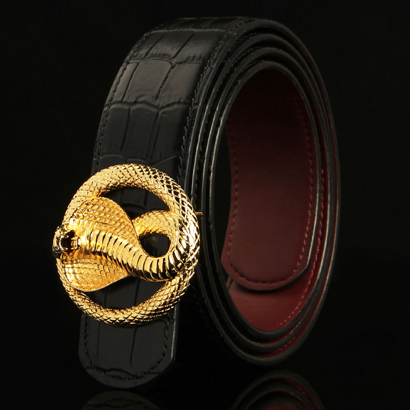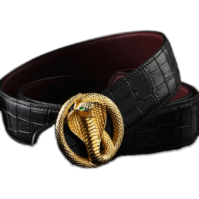 Men's belt stainless steel cobra animal belt head layer cowhide crocodile pattern pants belt personality fashion CI53