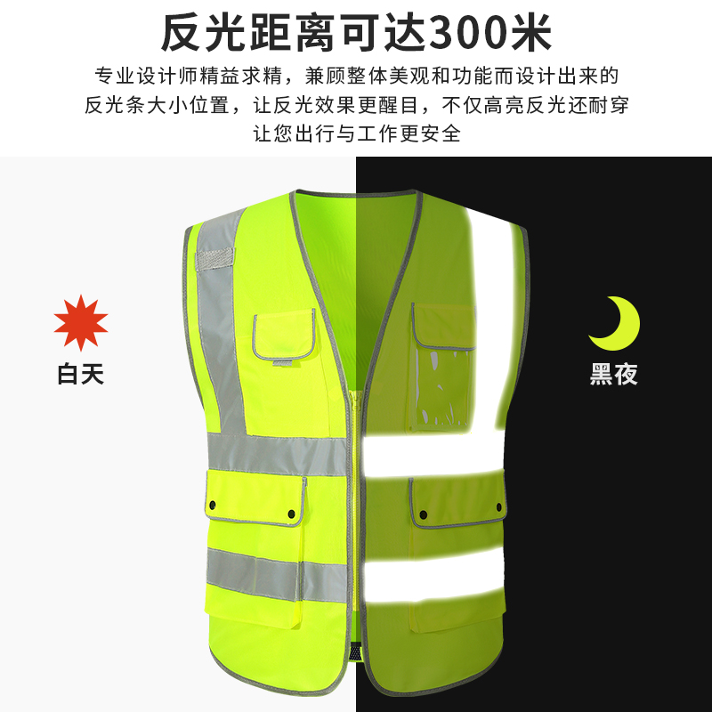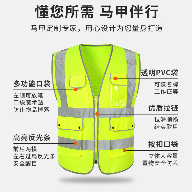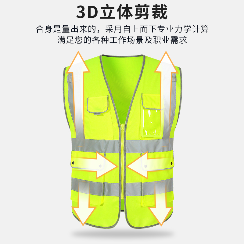 Construction Site Multi-Pocket Reflective Vest Construction Process Safety Waistcoat Sanitation Traffic Big Size Breathable Clothes Custom