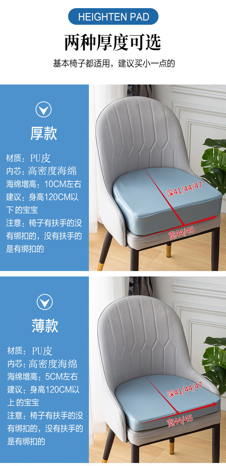 Pure Color Modern Light Lavish Chair Heightening Thickened Leather Cushion Living-room Non-slip Elementary School Kids Eat Dining Chair With Dirty Seat Cushion