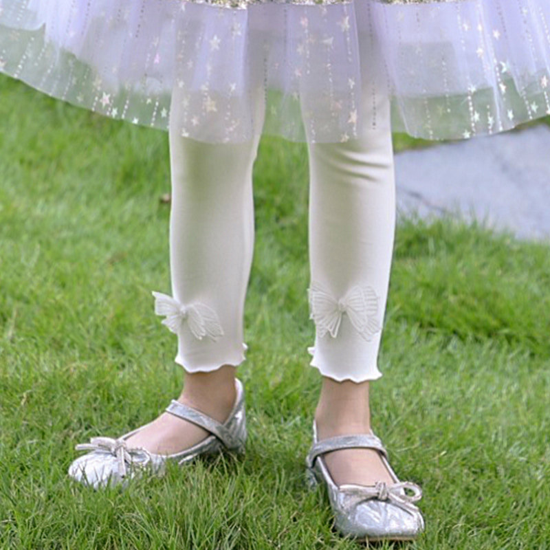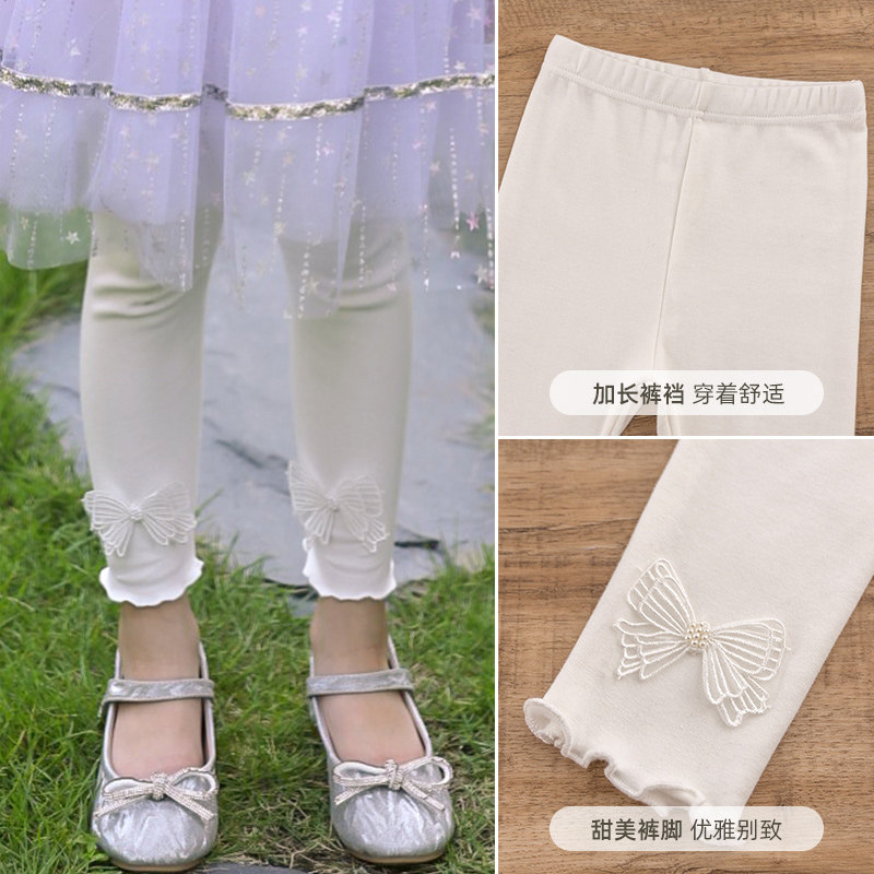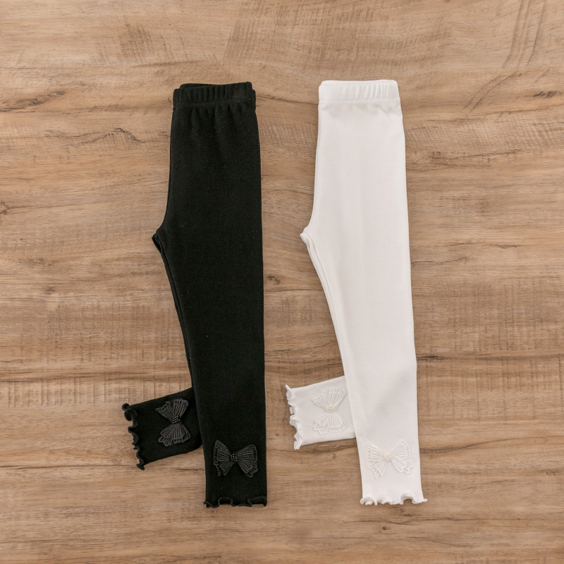 Girl White Pants Black Little Girl Long Pants Foreign Pie High Waisted Butterfly Knot Wood Ear Side Children Fall Inside Pants