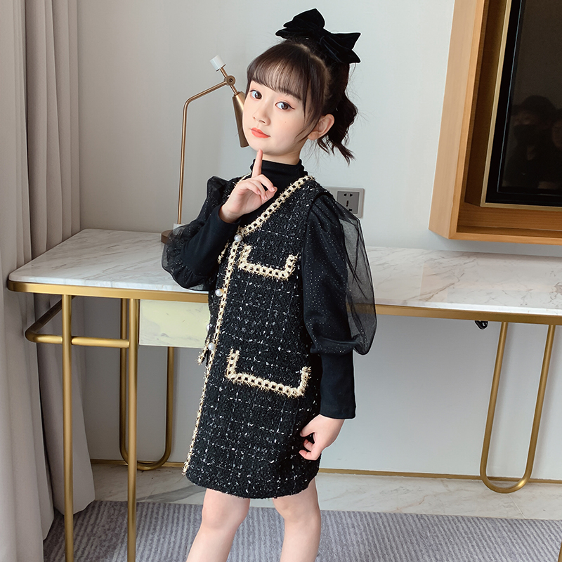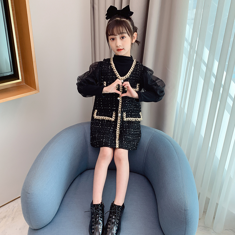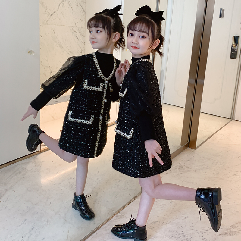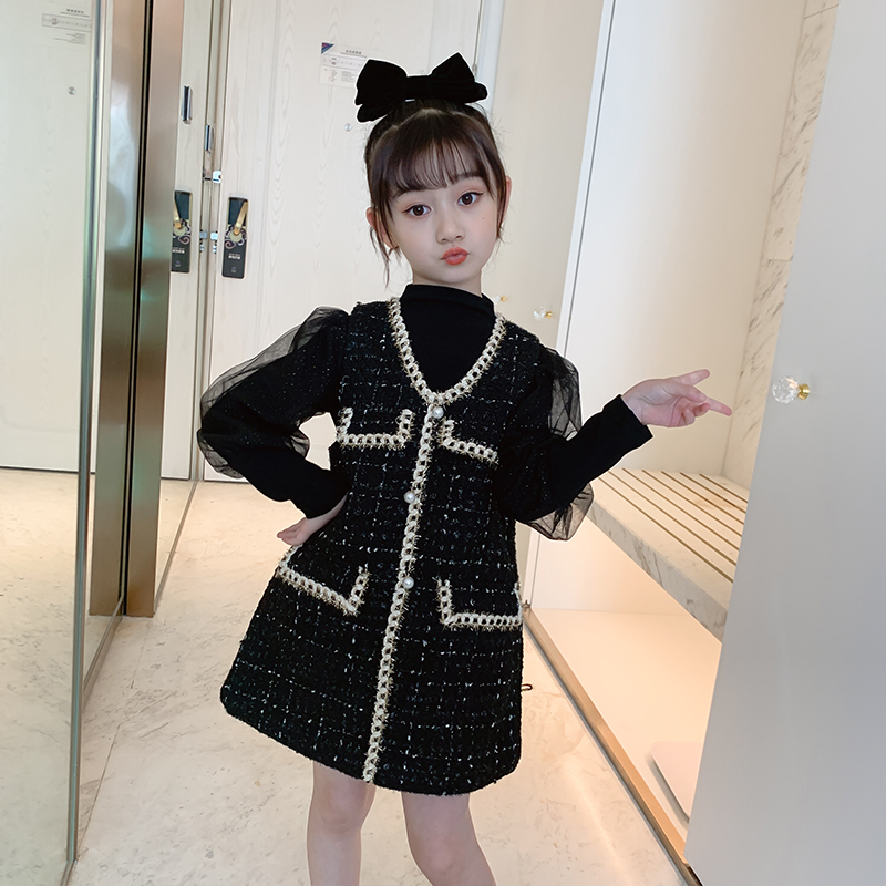 Girls Autumn Dresses 2022 New Western Style Children's Suits Small Fragrance Fashionable Spring and Autumn Suits Princess Skirts
