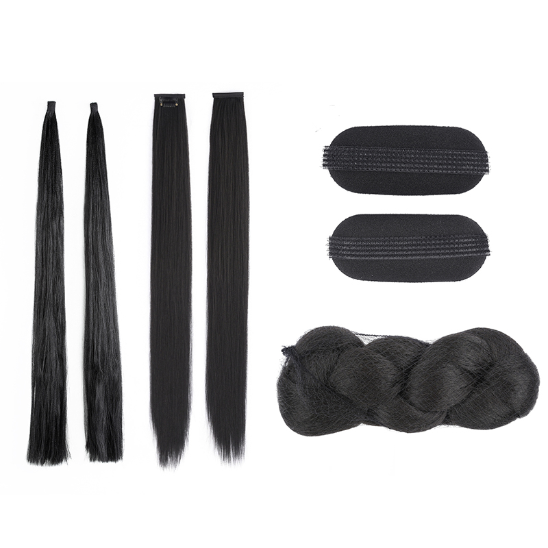 Black--a pair of black hair bundles--a pair of long-shaped sponge pads with large size black--new style without base twist 17 cm black--one card of corn silk black--combination suit