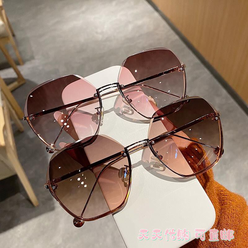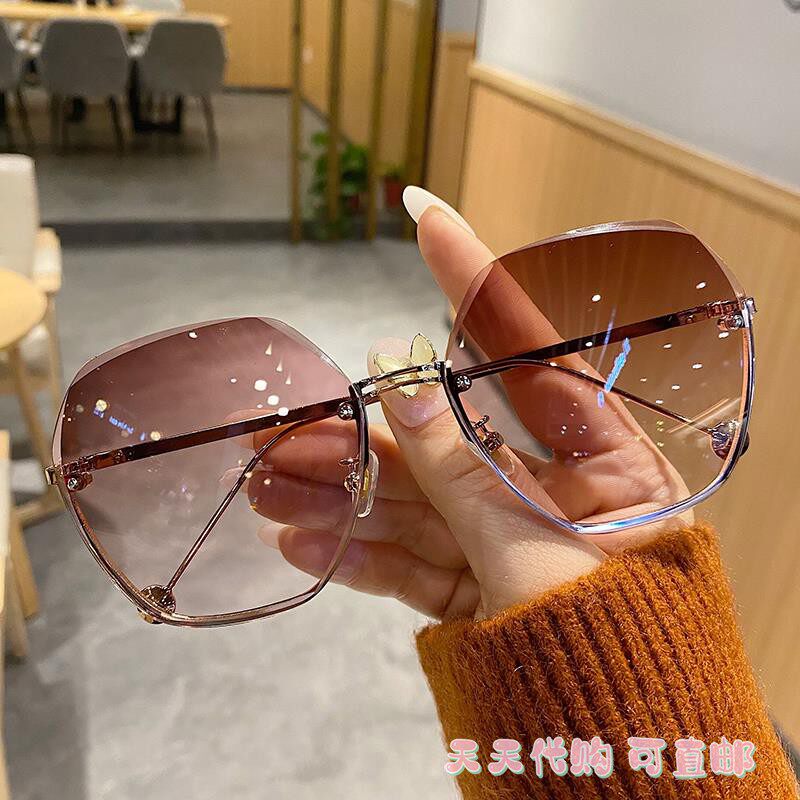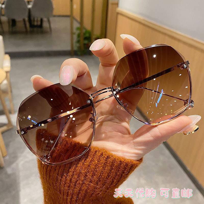 Japan ZD new no-frame cutting edge sunglasses wave qi and women's large face slim fashion glasses anti-UV