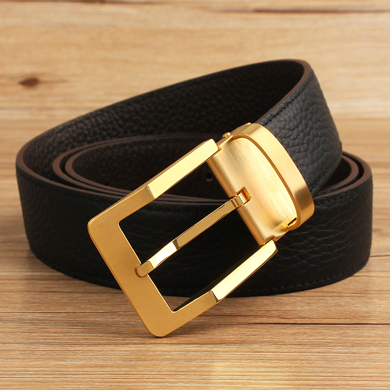 Trouser belt men's belt pin buckle double-sided first layer cowhide belt pure copper buckle pants belt gift box gift box CI74