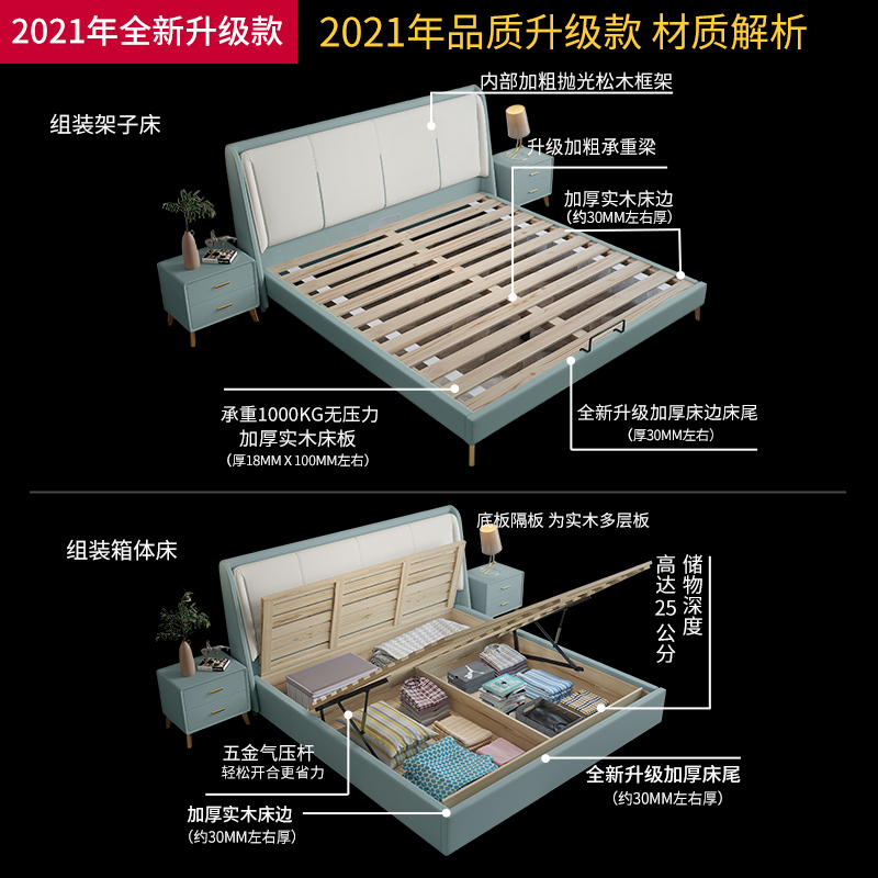 Modern simple fabric bed, 18 meter high box, luxury bed, master bedroom, atmospheric technology, double bed, storage bed