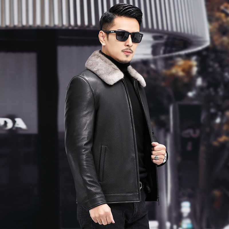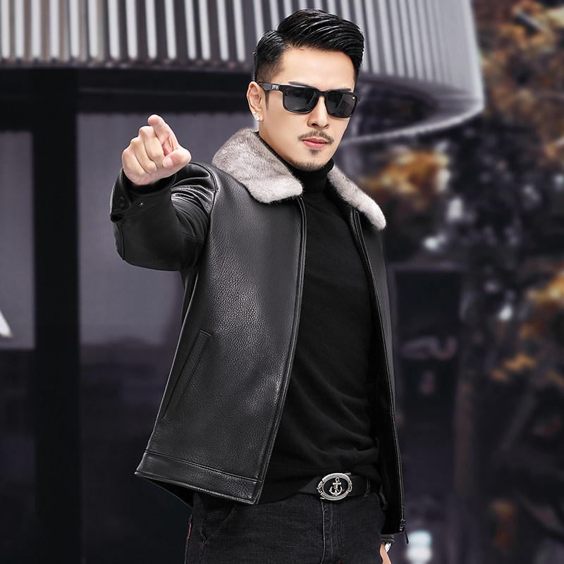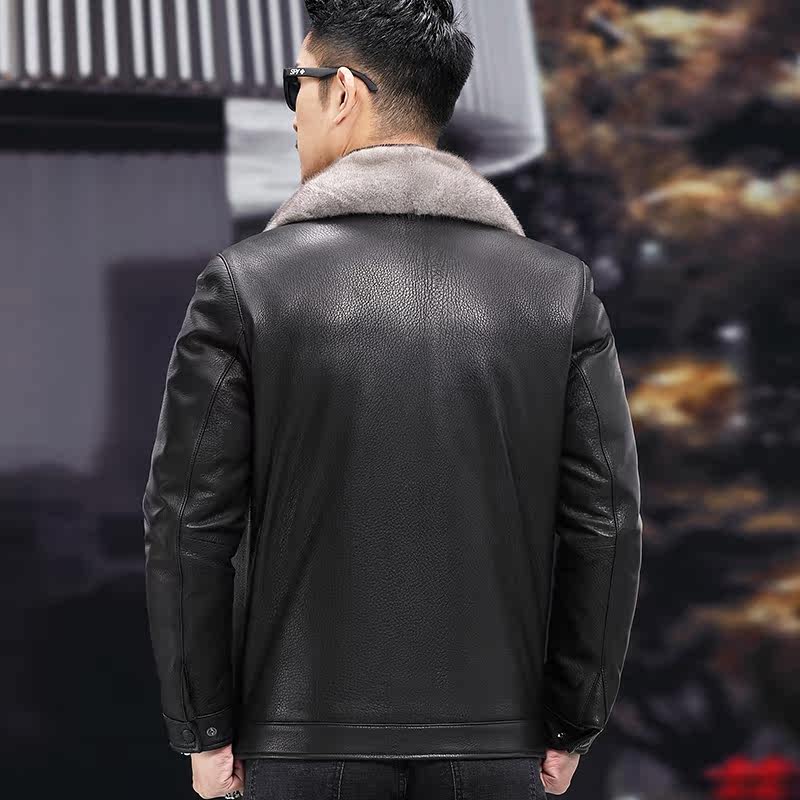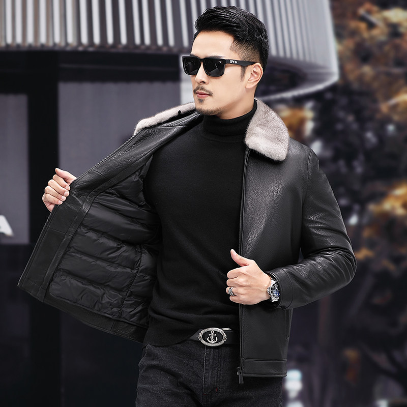 2021 new genuine leather clothing for men's goat leather jacket Short-turned-collar locomotive Henning leather down Neri jacket