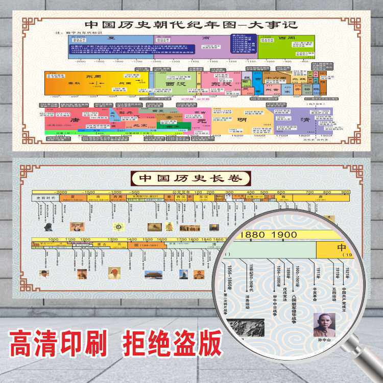 Chinese History Long Scroll 80x40cm Chinese History Long Scroll 120x60cm Chinese History Long Scroll 180x90cm Chinese Historical Dynasty Chronicle Chart 80x40cm Chinese Calendar